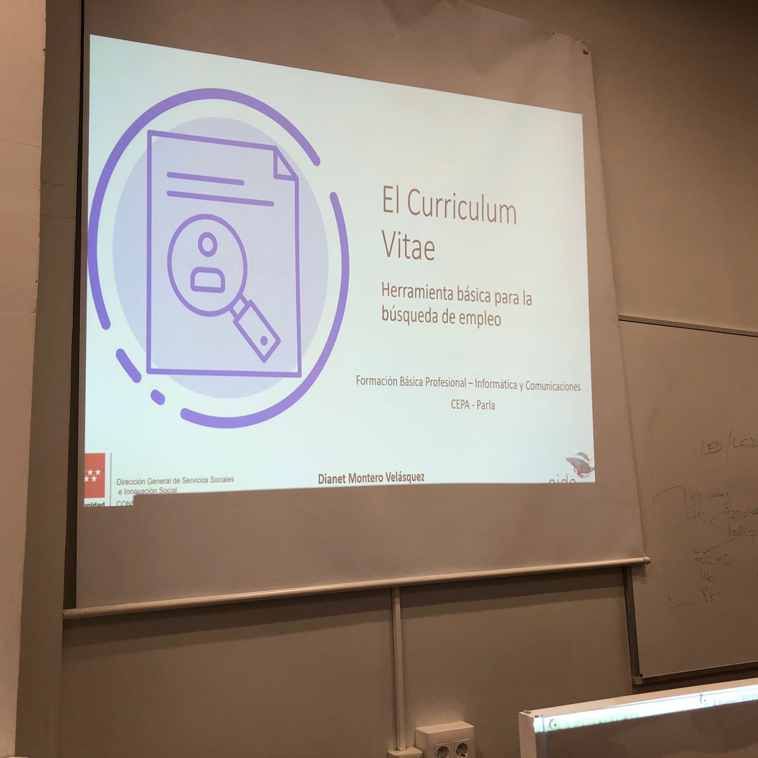 En esta mañana estuvimos en el Centro de Educación de Personas Adultas Ramón y Cajal de Parla, hablando sobre «El CV como herramienta básica para la búsqueda de empleo».