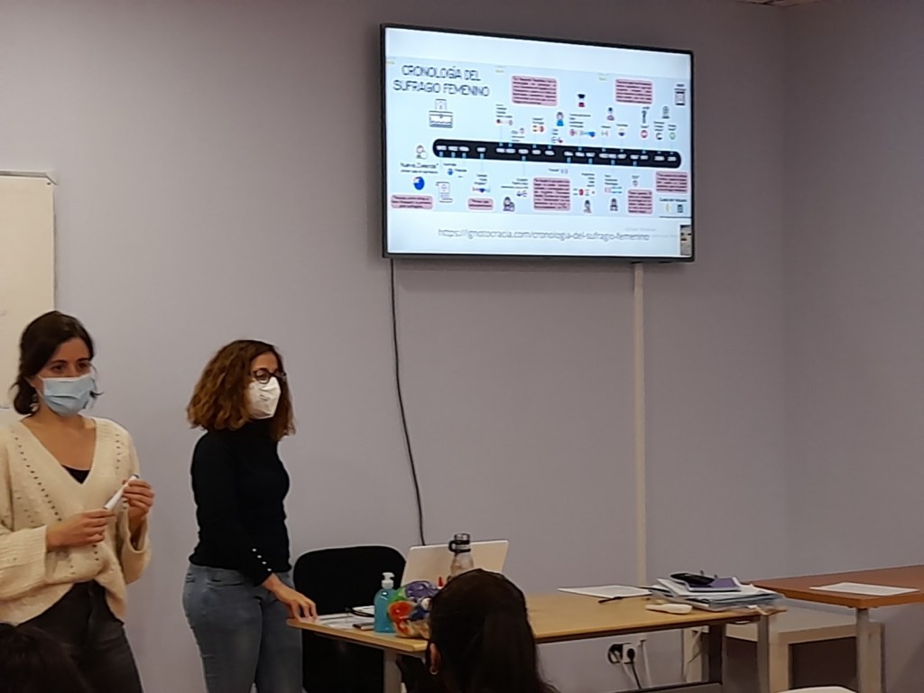 Tuvimos la colaboración de dos alumnas de prácticas del certificado de profesionalidad de «Promoción para la igualdad efectiva de mujeres y hombres». Se trabajaron conceptos relacionados con la igualdad de género y sobre la condición de la mujer en el entorno laboral.