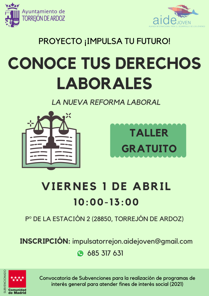 El taller es totalmente gratuito, pero con aforo limitado, por lo que es una buena oportunidad para conocer tus derechos como ciudadano/a, pero sobre todo, como trabajador/a.