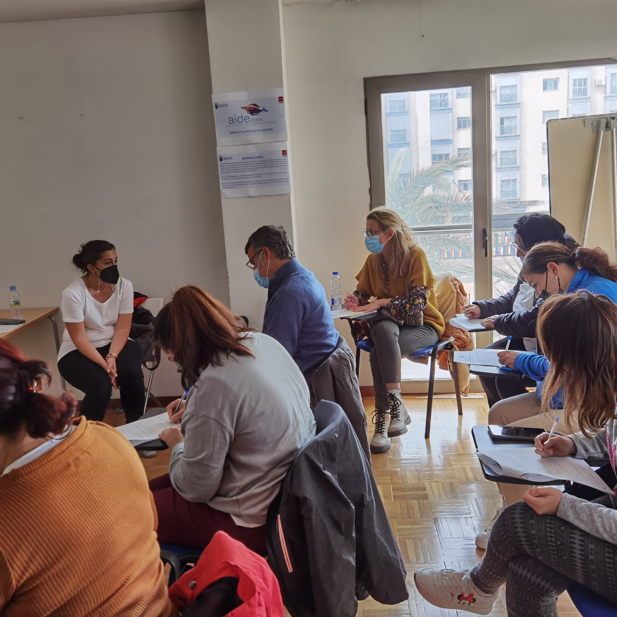 Durante la mañana de hoy, Sandra, una profesional de recursos humanos, ha venido a Torrejón de Ardoz para impartir el taller de alfabetización digital, enfocándolo al uso responsable del móvil para buscar empleo.