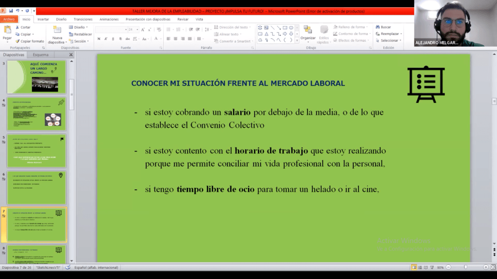 El día 6 agosto se impartió el «Taller de derecho laboral y mejora de empleo» de forma virtual con el alumnado del Certificado de profesionalidad en «Atención sociosanitaria a personas dependientes en instituciones sociales» COD. SSCS0208 organizado dentro de nuestro Proyecto «Impulsa Tu Futuro» en nuestro Centro AIDEFORMACIÓN- Centro de Formación y Empleo en horario de mañana de 11:00 a 14:00 horas.
