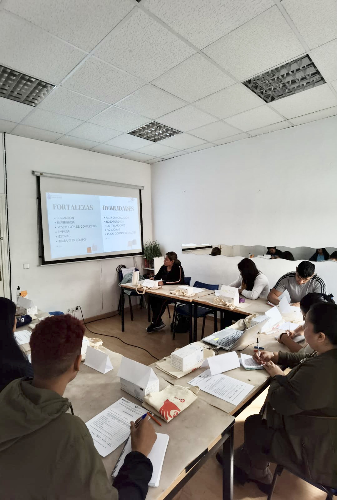 Para comenzar, se realizó un ejercicio de autoconocimiento a través de la técnica DAFO, la cual consiste en analizar las debilidades, amenazas, fortalezas y oportunidades. Esta actividad la enfocamos a la entrevista de trabajo, lo cual es muy beneficioso, tanto para el ámbito laboral como personal.