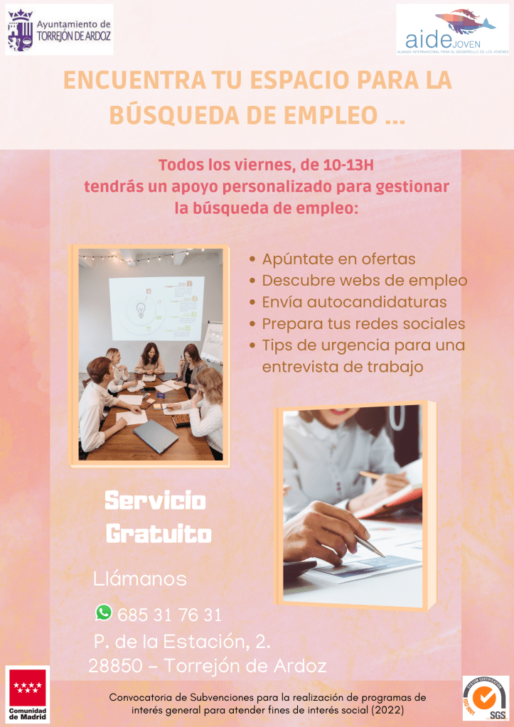 25 abril, 2023 aidejovenimpulsatufuturo Atención personalizada para gestionar la búsqueda de empleo por internet Compártelo: Compartir en X (Se abre en una ventana nueva) X Comparte en Facebook (Se abre en una ventana nueva) Facebook Compartir en WhatsApp (Se abre en una ventana nueva) WhatsApp Compartir en Telegram (Se abre en una ventana nueva) Telegram Me gusta Cargando... Relacionado