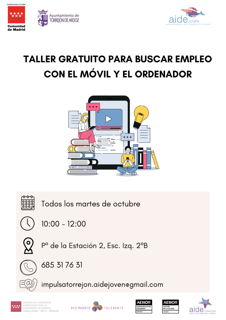 Aprovecha e inscríbete con nosotros en las clases de competencias digitales básicas para la búsqueda empleo. Te enseñaremos a manejarte mejor con el correo electrónico, las plataformas de empleo, las páginas de la administración pública para realizar gestiones relacionadas con empleo, etc.