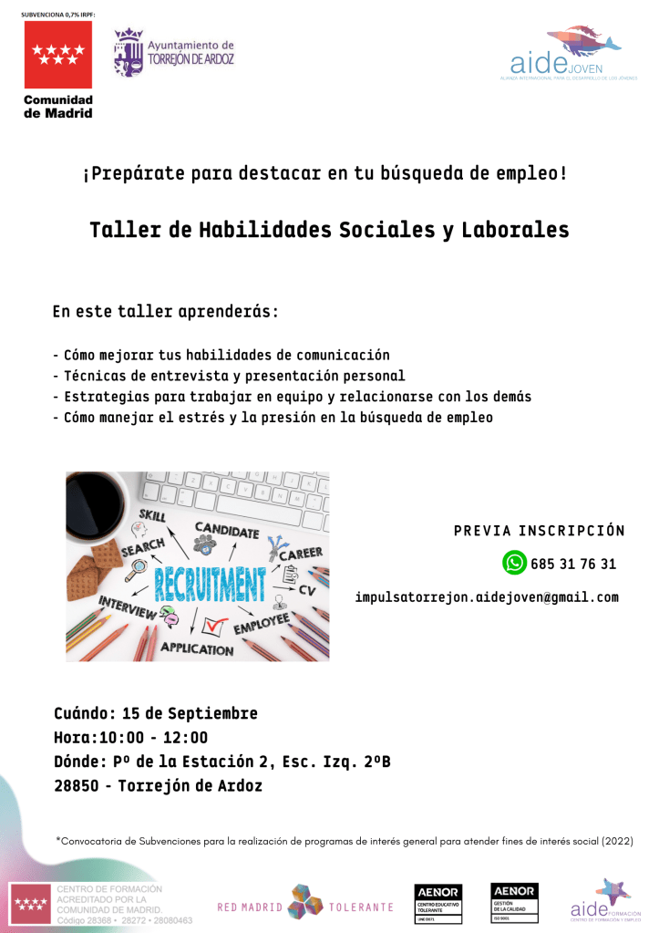 Las empresas se interesan cada vez más por conocer las habilidades sociales de los candidatos, cómo interactúan o cómo se expresan. Por este motivo, vemos importante trabajar este tema en nuestros talleres, porque contar con adecuadas habilidades sociales te permite establecer conexiones, comunicarte efectivamente y trabajar en equipo de manera exitosa. Estas habilidades pueden marcar la diferencia entre destacar en el proceso de selección o pasar desapercibido.