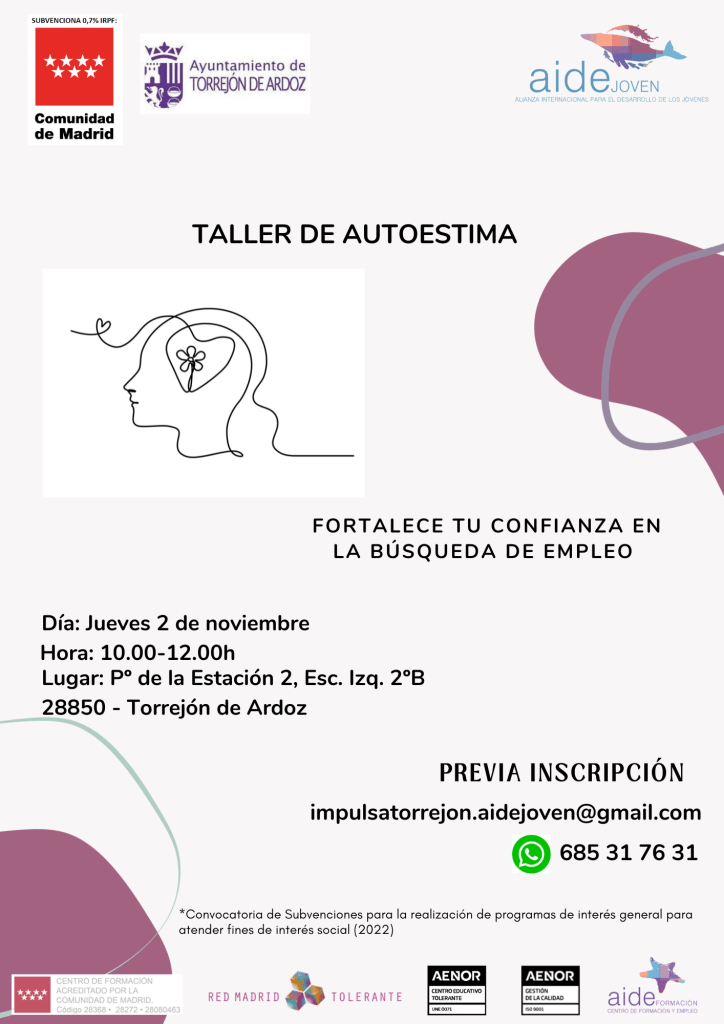 Te invitamos a un taller que combina dos aspectos fundamentales en el camino hacia el éxito laboral. Exploraremos la importancia de una autoestima saludable en el proceso de búsqueda de empleo y cómo influye en tu confianza, tu toma de decisiones y tu capacidad para enfrentar desafíos.
