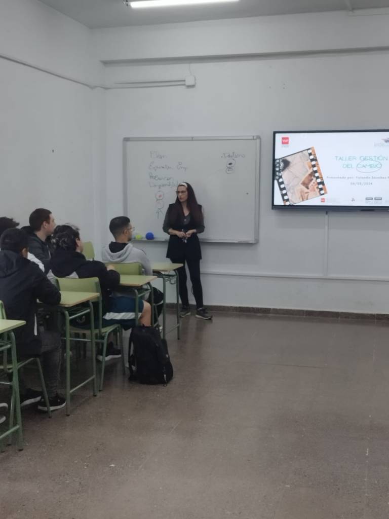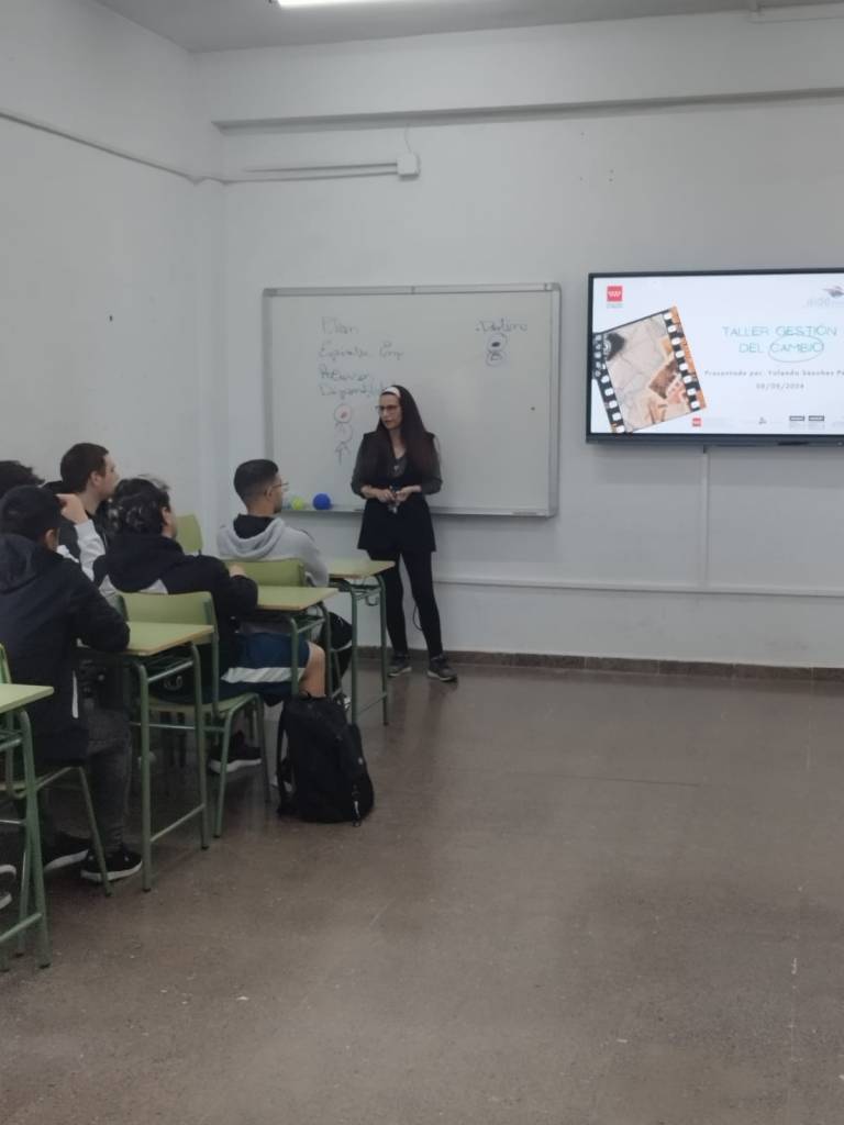 El pasado jueves 09/05/2024, en la sede del IES Pío Baroja, se llevó a cabo dos talleres de Gestión del Cambio impartido por el equipo de AIDEJOVEN.