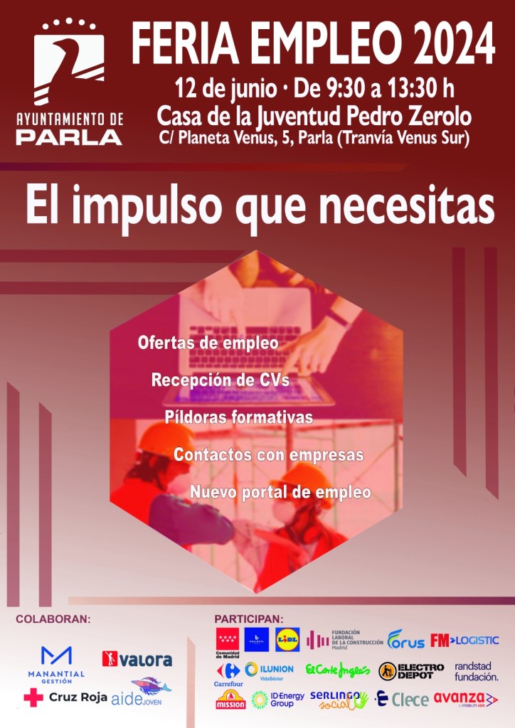 📢 ¿Buscas empleo o deseas mejorar tu situación laboral? No te pierdas la 1ª Feria de Empleo de Parla.
