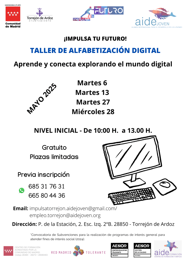 Inscríbete en el taller de alfabetización digital que estaremos dictando en nuestra sede durante el mes de mayo, para que adquieras competencias que puedas incorporar a tu curriculum vitae y mejor desenvolvimiento profesional.