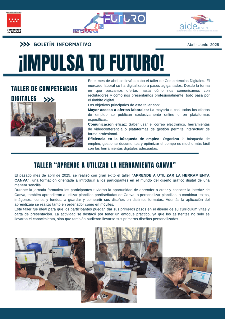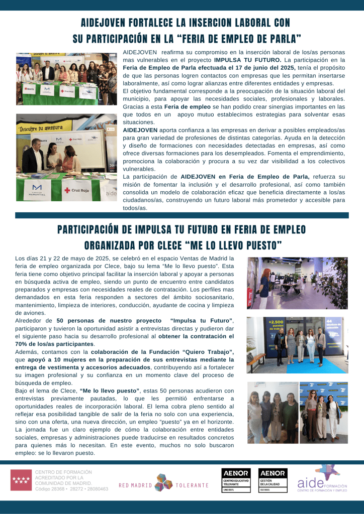 1 julio, 2025 aidejovenimpulsatufuturo Boletín Informativo Abril-Junio 2025 Compártelo: Compartir en X (Se abre en una ventana nueva) X Comparte en Facebook (Se abre en una ventana nueva) Facebook Compartir en WhatsApp (Se abre en una ventana nueva) WhatsApp Compartir en Telegram (Se abre en una ventana nueva) Telegram Me gusta Cargando... Relacionado